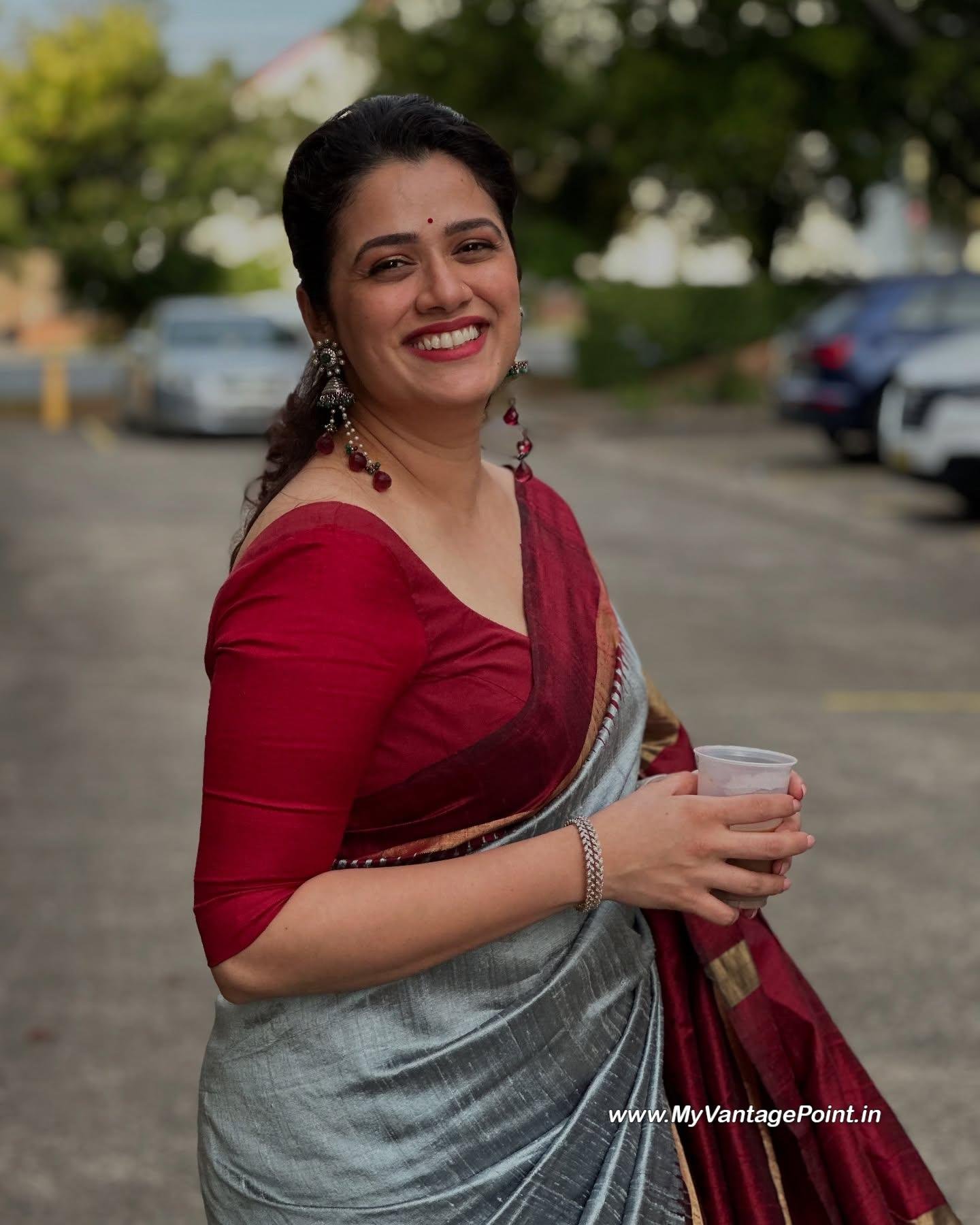 Her viral blue saree moment captured this allure perfectly: draped in a sheer, form-fitting fabric, her subtle smiles and poised demeanor drew widespread admiration, with fans praising her “sultry yet sophisticated” vibe. Comparisons to Monica Bellucci stem from her intellectual sensuality, while Sydney Sweeney nods highlight her youthful, bombshell appeal. Girija maintains her figure through yoga and dance, radiating an effortless charm that transcends trends.